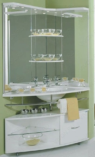 Комплектация: полка – 1, поворотная опора – 3, корзина – 1, раковина MEBLICO R угловая