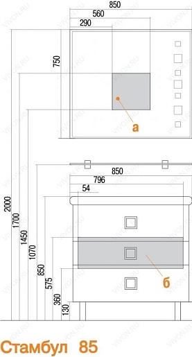 Тумба-умывальник «Стамбул 85» - арт. 1272-1.123K / 1.A145.9.K0S.T56.0