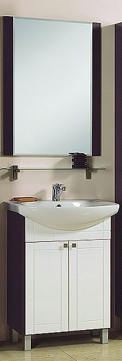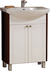 Комплектация: две распашные дверцы, отделение с регулируемой по высоте полкой, фаянсовая раковина «Балтика-65», корпус цвета венге с контрастными белыми фасадами, хромированая фурнитура,