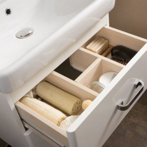 Комплектация: крепления, опорные ножки, доводчики, ручка – 3, ящики на направляющих – 3, раковина "Тигода" 60см (арт. 1WH302082). Средняя нагрузка на ящик - 25 кг.