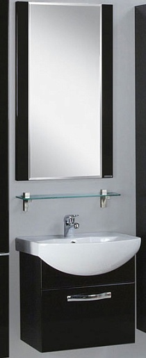 Описание: влагостойкое зеркальное полотно с декоративными планками рояльного черного цвета из ЛДСП. Навесы в комплекте.