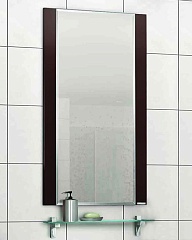 Описание: влагостойкое зеркальное полотно с декоративными планками шоколадного цвета из ЛДСП. Навесы в комплекте.