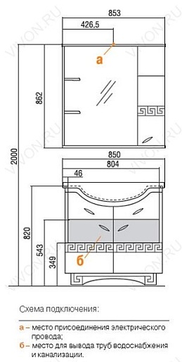 - Тумба с раковиной Акватон Аттика 85: раковина Акватель 85, полка - 1 шт., ручки - 4 шт., ящики - 2 шт.