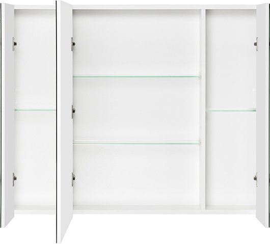 Комплектация: зеркальный шкаф, навес (2 шт.), полка вкладная стеклянная (4 шт.).