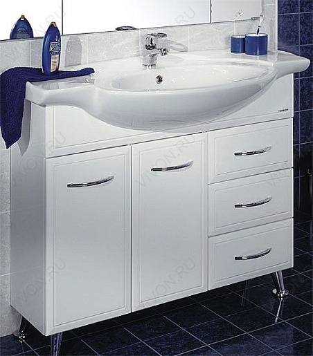- Тумба с раковиной Акватон Эмили 100: раковина Serel Kardelen, полка - 1 шт., ручка - 5 шт., ящик - 3 шт., ножка - 4 шт., бельевая корзина - 1 шт.