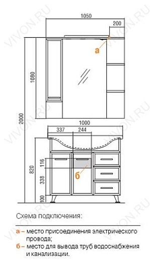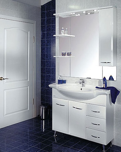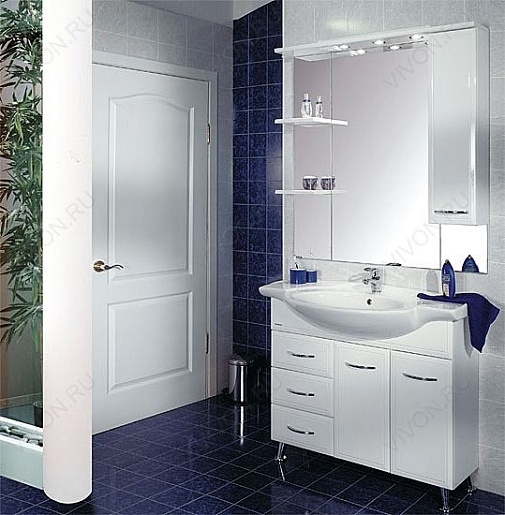 - Зеркало-шкаф Акватон Эмили 105 R: светильники галогеновые - 3 шт., трансформатор - 1 шт., выключатель - 1 шт., ручка - 1 шт., розетка - 1 шт., полка - 2 шт.