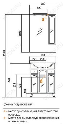 - Зеркало-шкаф Акватон Эмилья 75 R: светильники галогеновые - 2 шт., трансформатор - 1 шт., выключатель - 1 шт., ручка - 1 шт., розетка - 1 шт., полки - 3 шт.