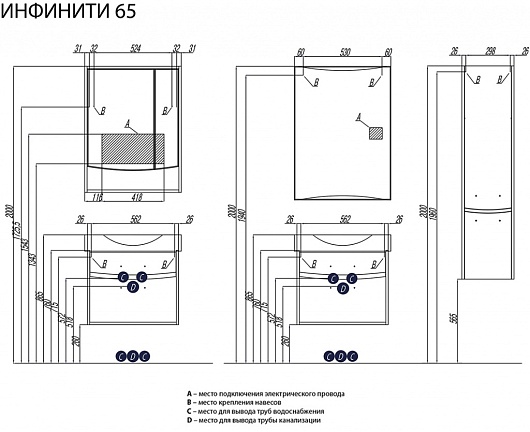 - Тумба с раковиной Акватон Инфинити 65, арт. 1A196901IF010: раковина Infinity 65 (арт. 1AX161WBXX000), система плавного закрывания, ящики- 2 шт., ручка - 2 шт.