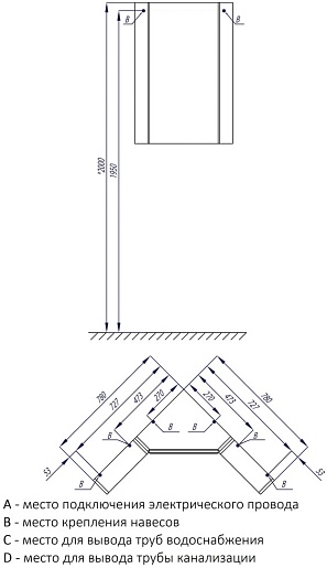 - Боковой модуль для углового зеркального шкафчика.