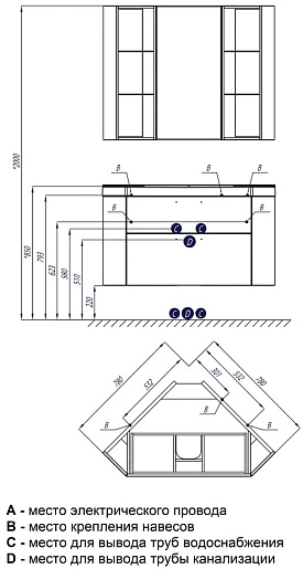 Угловая тумба с раковиной Акватон Кантара 110 - арт. 1A205601ANW70 / 1A715331AN010.