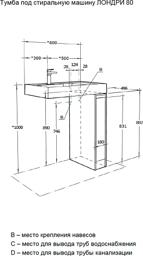 Тумба с раковиной Акватон Лондри 20 - арт. 1A267101LHDY0 / 1A275001LHDY0 / 1A72113KRW010.