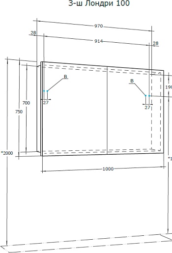 Зеркальный шкаф Акватон Лондри 100 - арт. 1A267302LH010.