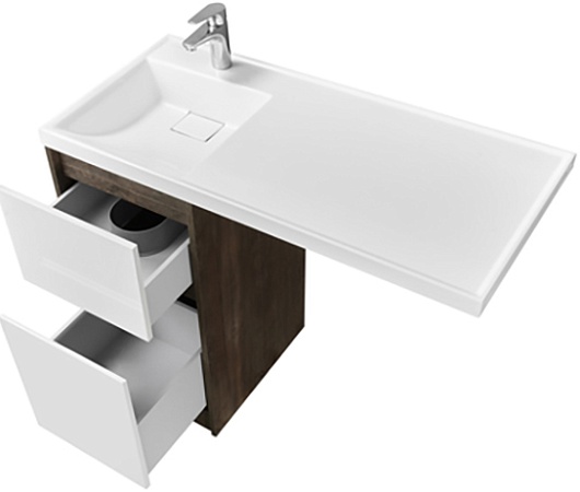 - Верхний ящик открывается с помощью системы push-to-open, а нижний - за фасад с помощью удобного выпила под углом.