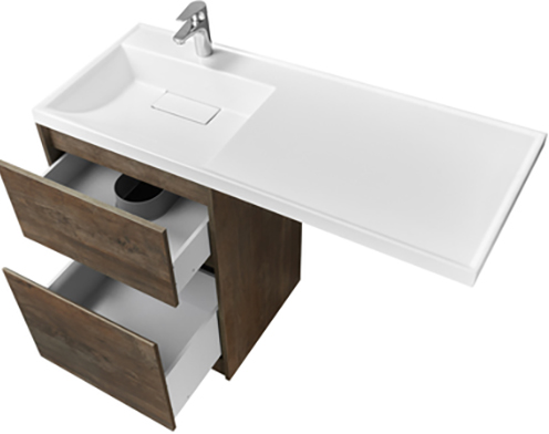 - Верхний ящик открывается с помощью системы push-to-open, а нижний - за фасад с помощью удобного выпила под углом.