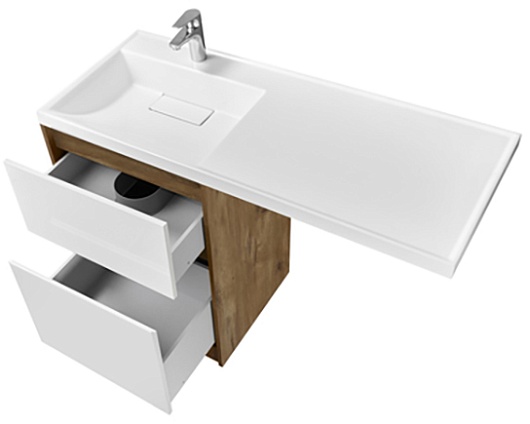 - Верхний ящик открывается с помощью системы push-to-open, а нижний - за фасад с помощью удобного выпила под углом.