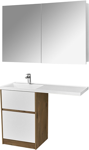 Комплектация: тумба (корпус), фасад (2 шт.), раковина, зеркальный шкаф, крепления.