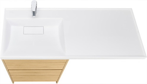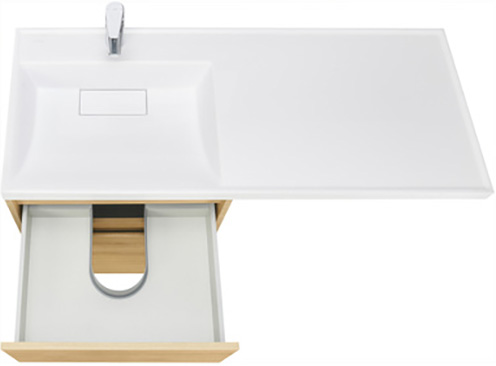 - Верхний ящик открывается с помощью системы push-to-open, а нижний - за фасад с помощью удобного выпила под углом.