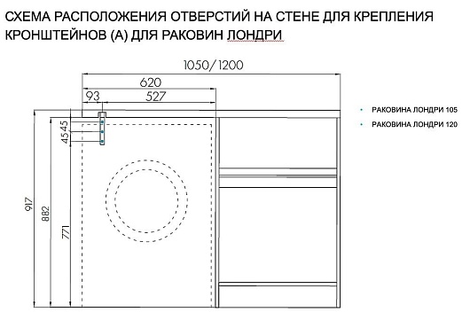 Тумба с раковиной Акватон Лондри 60 R - арт. 1A235901LH010 / 1A72243KLH010.