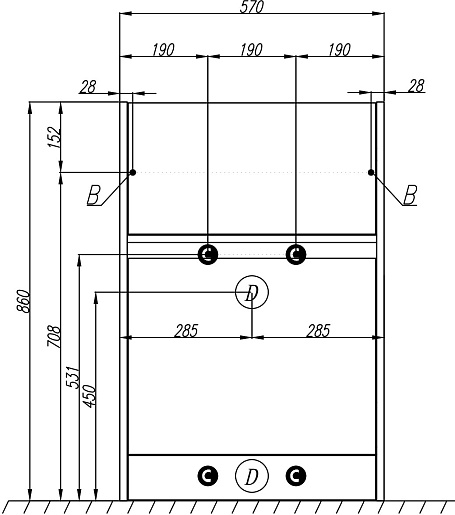 - Верхний ящик открывается с помощью системы push-to-open, а нижний - за изящную удобную профильную хромированную ручку.
