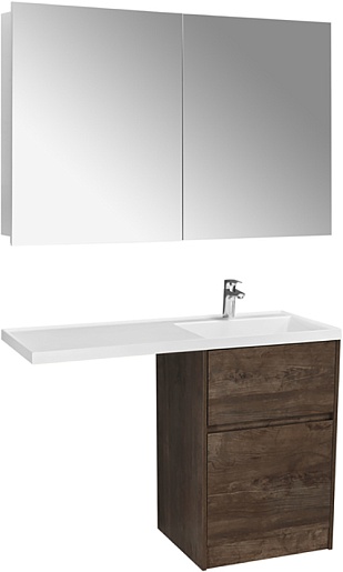 Комплектация: тумба (корпус), фасад (2 шт.), раковина, зеркальный шкаф, крепления.