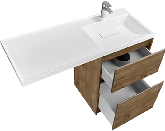 - Верхний ящик открывается с помощью системы push-to-open, а нижний - за фасад с помощью удобного выпила под углом.