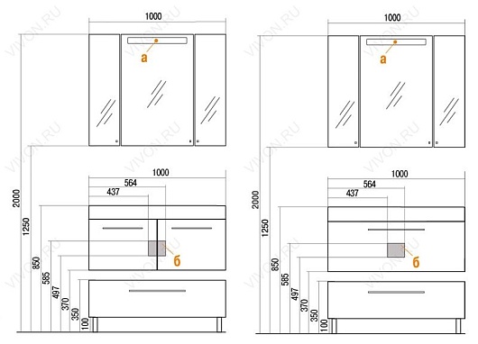 - Зеркало-шкаф Акватон Мадрид 100: зеркальные распашные дверцы, полки стеклянные - 5 шт., полкодержатели - 20 шт., светильник - 1 шт.