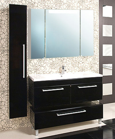 Тумба под раковину Мадрид 100 М-2 чёрный глянец