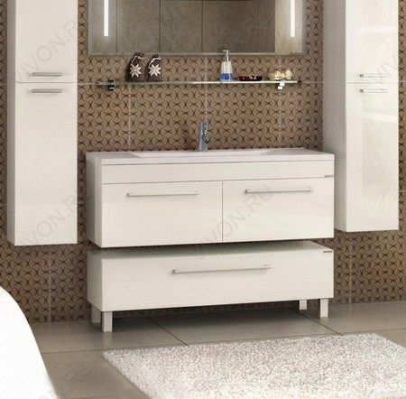 Комплектация: два выдвижных ящика с ограничительными сетками, противоскользящими ковриками и системой плавного закрывания, раковина "Премьер 1000" из литого мрамора. Корпус из ВДСП с глянцевым трехслойным покрытием, фасады из МДФ с пятислойной глянцевой покраской.