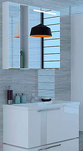 Комплектация: навесы - 2, петли с доводчиками - 5, фасад - 2, стеклянная полка - 5, светильник - 1.