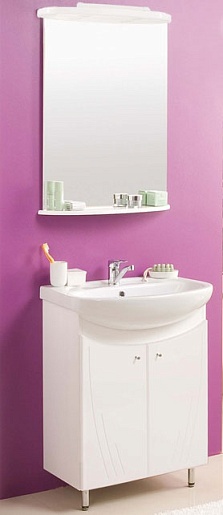 Комплектация: Две распашные дверцы, отделение с полкой, раковина "Акваполо 6533", фурнитура и ножки хромированые. Корпус из ЛДСП, фасады из МДФ с минималистичной фрезеровкой. В комплект входят навесы.