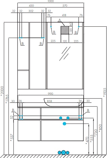 Тумба с раковиной Акватон Мишель 100 - арт. 1A256901MIX30 / 732700B000 / 1A277103MIDR0.