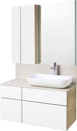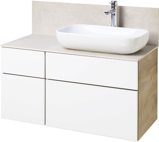 Акватон Мебель для ванной Мишель 100 с гранитной столешницей дуб эндгрейн/белый с раковиной Infinity