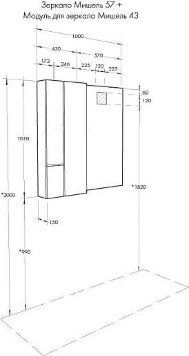 Шкаф подвесной Акватон Мишель 43 - арт. 1A244203MIX40.