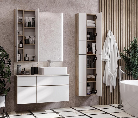 Тумба под раковину Мишель 100 дуб эндгрейн/белый