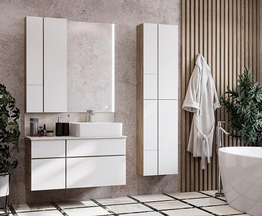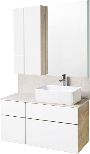 Акватон Мебель для ванной Мишель 100 с гранитной столешницей дуб эндгрейн/белый