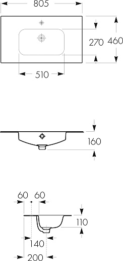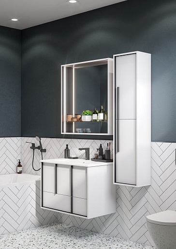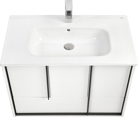 - Верхний ящик тумбы оснащен нажимной системой открывания Push-to-open.