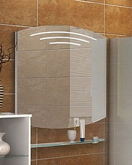 Описание: влагостойкое зеркальное полотно с оригинальной встроенной подсветкой, выключатель, розетка. Функция внутреннего подогрева Anti Steam предотвращает запотевание зеркала. Стеклянная полочка приобретается отдельно.