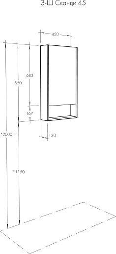 Зеркальный шкаф Акватон Сканди 45 - арт. 1A252002SDZ90.
