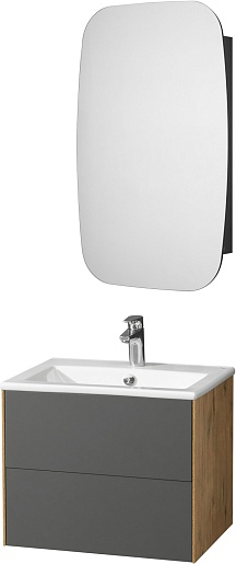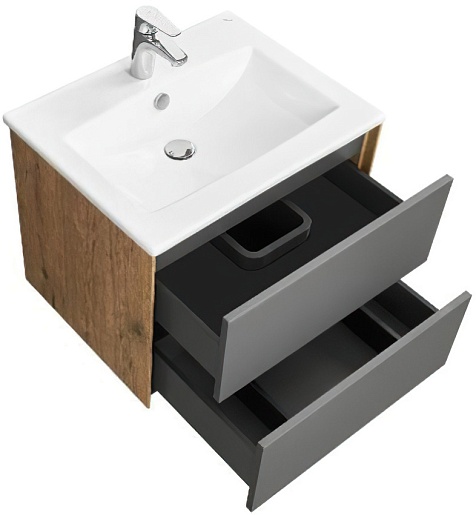 Тумба с раковиной Акватон Сохо 60 графит софт/дуб веллингтон - арт. 1A258001AJA00 / 1WH501606.
