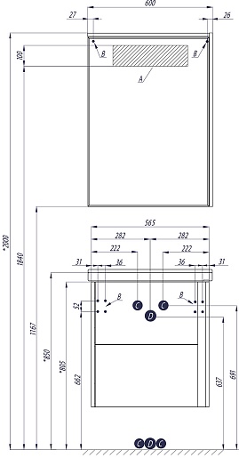 Комплектация: зеркальный шкаф, светильник.