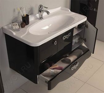 - Тумба с раковиной Акватон Венеция 90 черная: раковина Венеция 900, ножки для мебели Акватон Венеция фигурные черные - 2 шт., двустенный ящик полного выдвижения с системой плавного закрывания - 1 шт., ручка - 4 шт., навес - 2 шт., распашной фасад - 3 шт., петли BLUM с интегрированной системой плавного закрывания