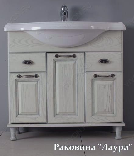 - Тумба с раковиной Акватон Жерона 85: раковина Лорето 85, ручка - 5 шт., ножка - 4 шт., навес - 2 шт., дверца - 3 шт., выдвижной ящик - 2 шт., петли с интегрированным доводом