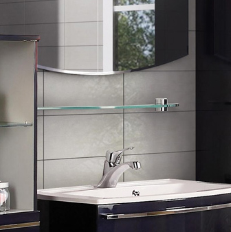 Описание: полочка для ванной из закаленного стекла с фацетом. Полкодержатели в комплекте.