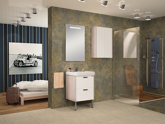 Акватон Шкаф для ванной "Йорк" белый/ясень фабрик 2 ств.