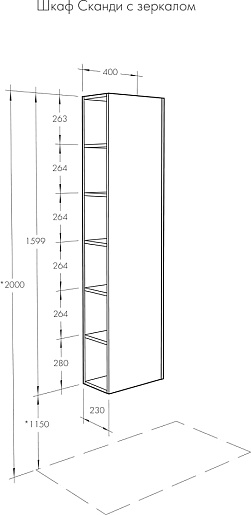 Подвесной шкаф пенал Акватон Сканди 40 - арт. 1A253403SDB20.