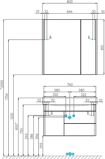 Комплектация: зеркальный шкаф, навес (2 шт.), ручка (3 шт.).