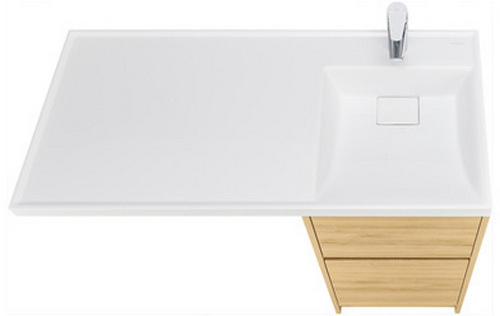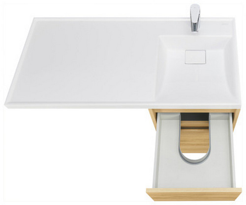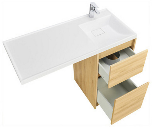 - Верхний ящик открывается с помощью системы push-to-open, а нижний - за фасад с помощью удобного выпила под углом.