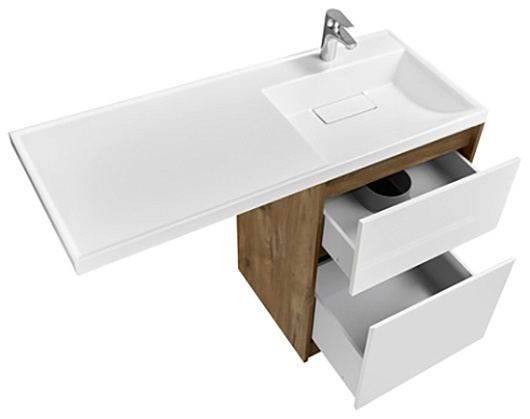- Верхний ящик открывается с помощью системы push-to-open, а нижний - за фасад с помощью удобного выпила под углом.