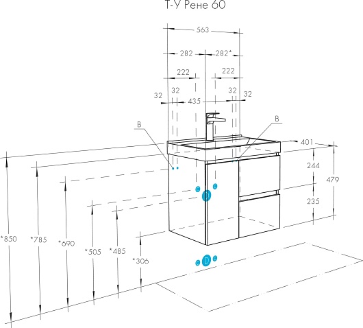 Тумба под раковину Акватон Рене 60 - арт. 1A258501NRC80.