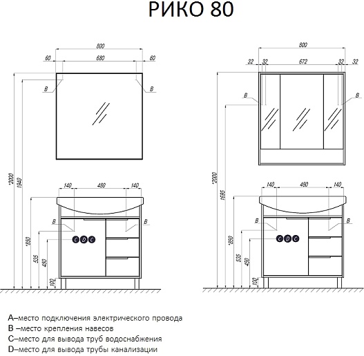 Тумба под раковину Акватон Рико 80 - арт. 1A215401RIB90.